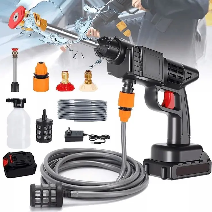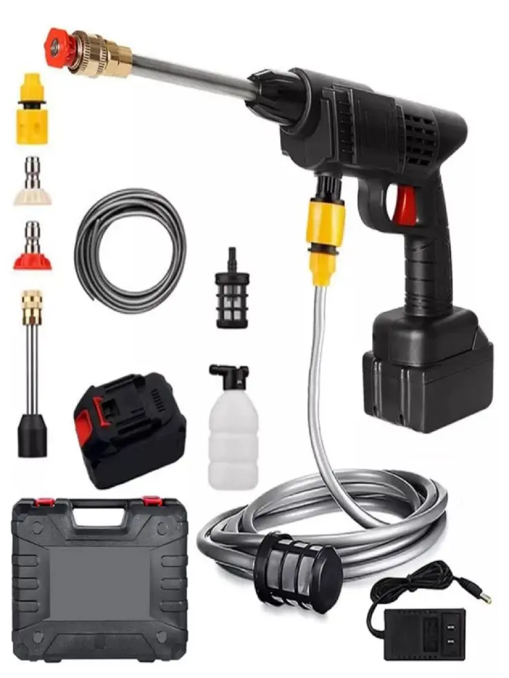 - Diseño Inalámbrico: Olvídate de los cables y las limitaciones. La Pistola de Agua funciona con baterías recargables, brindándote la libertad de movimiento para realizar tus tareas sin restricciones.